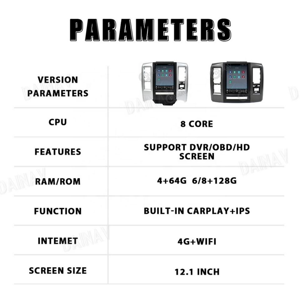 Autoradio 12,1 pouces pour Dodge Ram 2009-2012, Android 12, écran vertical, multimédia, autoradio, Carplay, navigation GPS, 128 Go