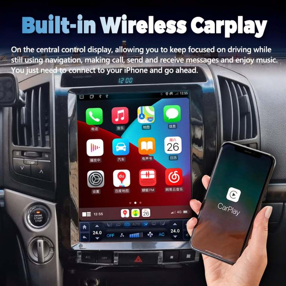 Écran Tesla 12,1 pouces pour Toyota Land Cruiser 200 LC200 2008-2019, autoradio Android 13, GPS, navigation, lecteur multimédia de voiture