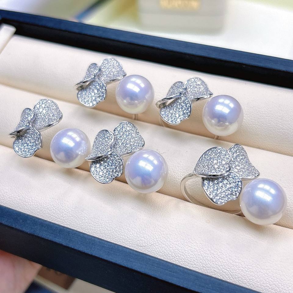 12-13mm Freshwater Pearl S925 Silver Ring Real Pearl Texture Clover Style Perfectly Extremely Strong Light Crown Shape Inlay