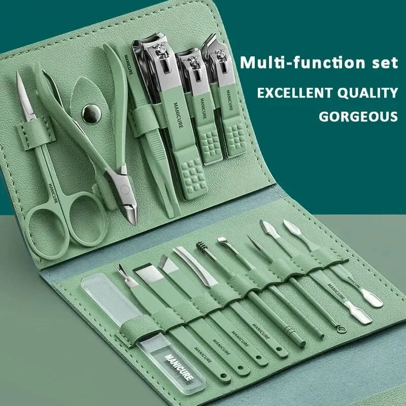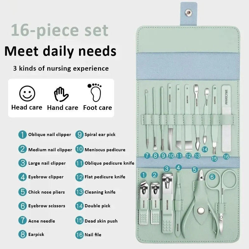 Ensemble de coupe-ongles en acier inoxydable, 12-16 pièces, avec sac pliable, kits de coupe-ongles pour manucure, ciseaux, outil de beauté et de maquillage