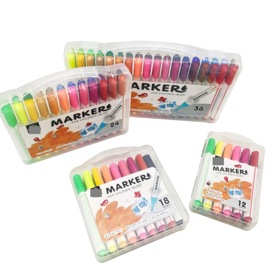 Ensemble de stylos marqueurs à pointe triangulaire en fibre, 12, 18, 24, 36 couleurs, lavables, pour enfants, avec logo personnalisé