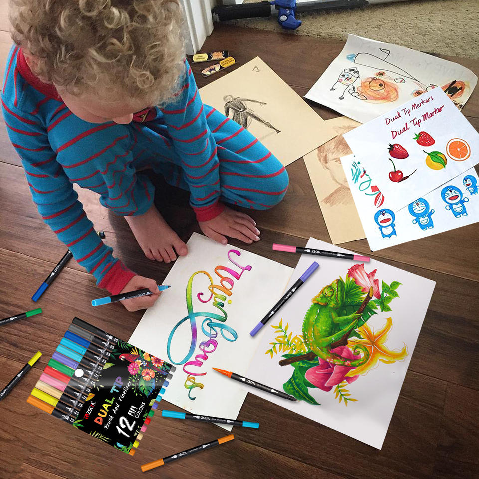 Type de texte:Marqueurs à double pointe (pinceau et fine) - Stylos marqueurs pastel pour croquis