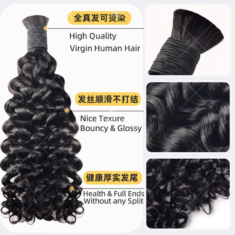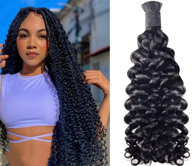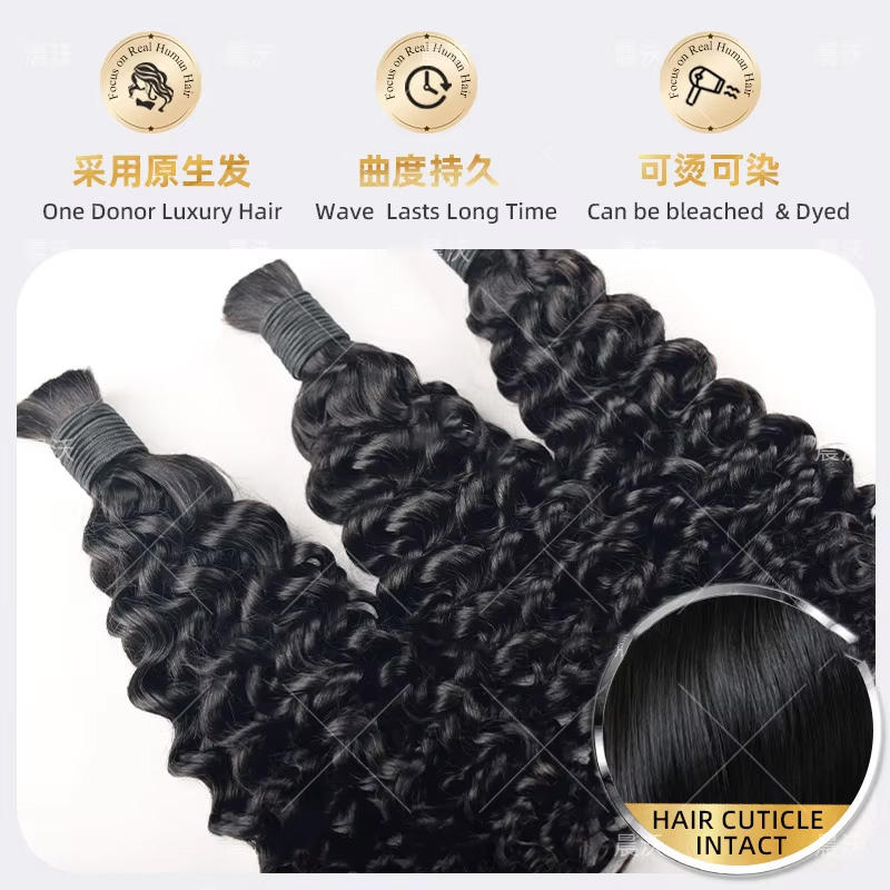 Cheveux humains Remy 1B double drawn pour tressage, 12-26 pouces, 100g, cuticules alignées, bouclés profonds, pour tresses bohèmes