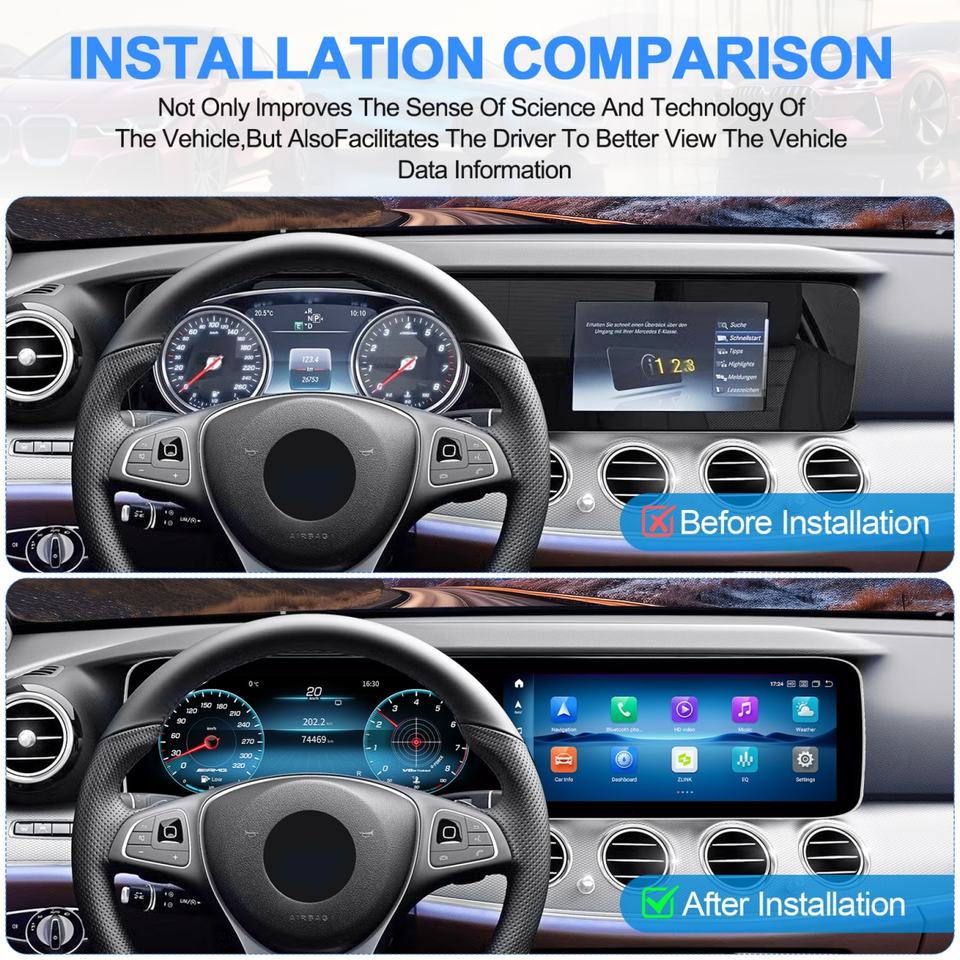 Écran double 12,3 pouces, autoradio Android Auto, écran de tableau de bord, nouveau design pour Mercedes Benz Classe E W213 2016 2018
