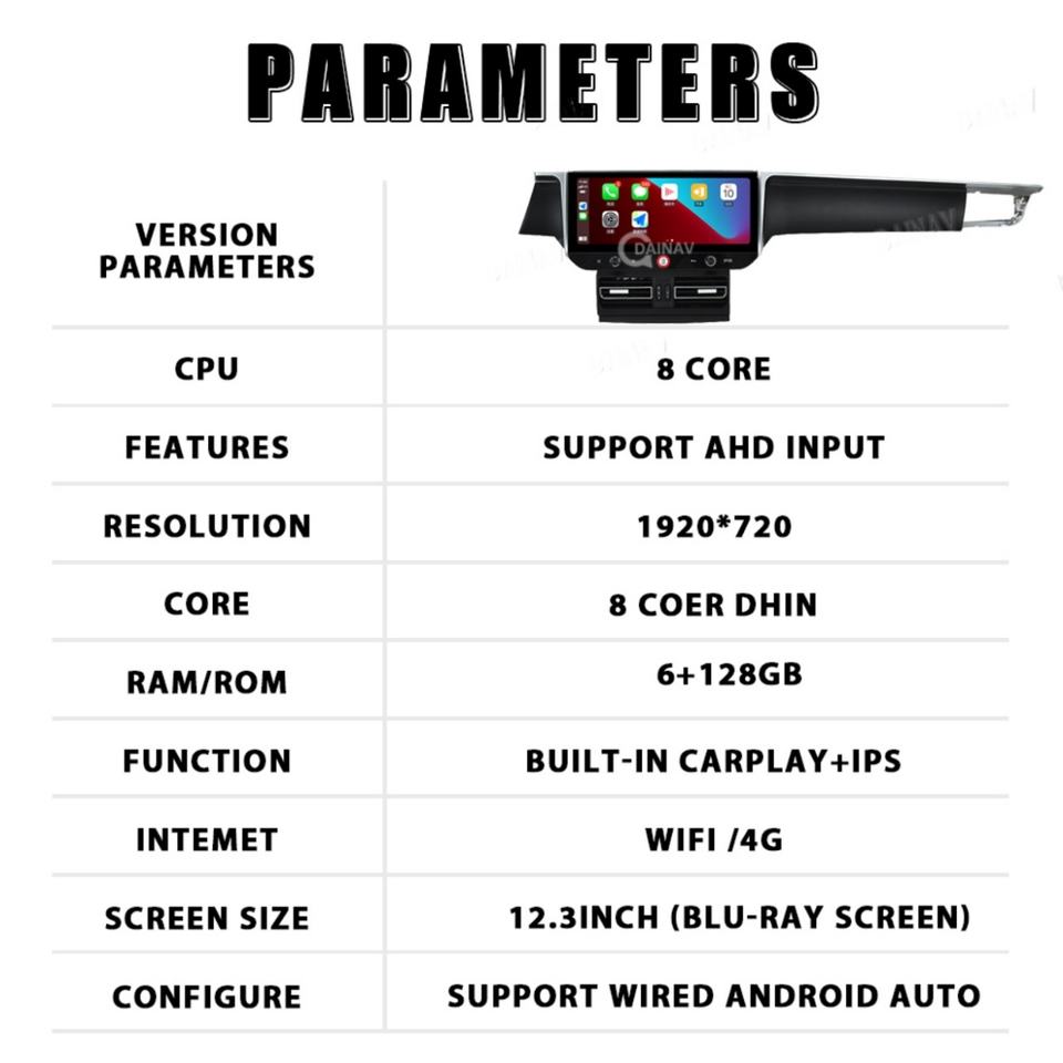 CarPlay, Android auto, Bluetooth-activé, Intégré DSP, MP3/MP4, Écran tactile, Visionneuse photo, Radio Tuner, Télécommande, Caméra de recul, Guidage vocal, Commande au Volant, Écran partagé, Aide à l'inversion, Vivre Parking, Trafic en temps réel, Multimédia Soutenu, Double Mode système de Navigation, Avertissement de vitesse, Microphone Intégré, L'interaction vocale, Téléchargement de l'application depuis le Play StoreFonction