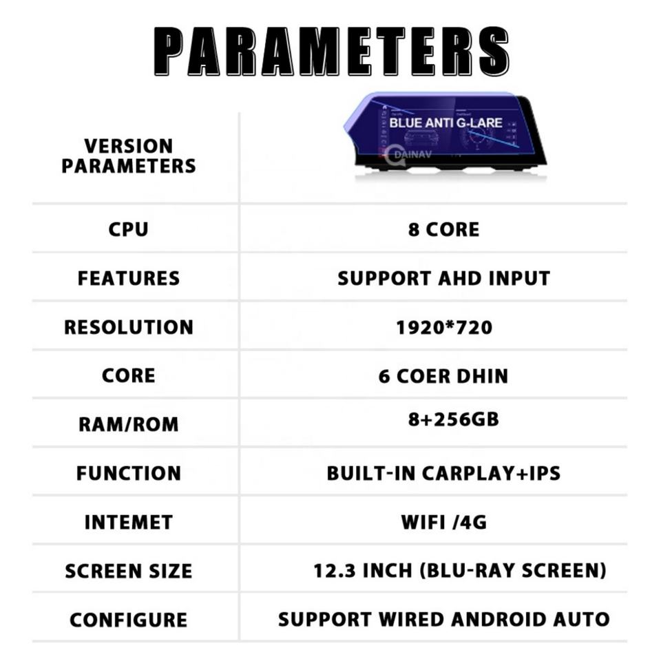 CarPlay, Android auto, Bluetooth-activé, Intégré DSP, MP3/MP4, Écran tactile, Visionneuse photo, Radio Tuner, Télécommande, 3D CARTE, Caméra de recul, Guidage vocal, Commande au Volant, Écran partagé, Planification de route, Distance D'avertissement, Aide à l'inversion, Vivre Parking, Trafic en temps réel, Multimédia Soutenu, Double Mode système de Navigation, Avertissement de vitesse, Boussole numérique, Microphone Intégré, L'interaction vocale, Téléchargement de l'application depuis le Play StoreFonction