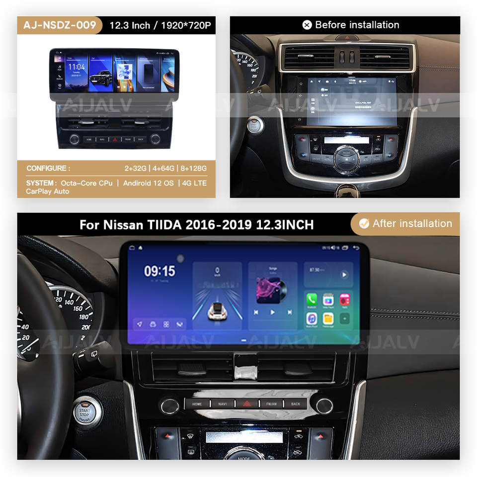 Autoradio 12,3 pouces avec CarPlay pour Nissan TIIDA 2016-2019, Android 13, GPS, navigation, lecteur multimédia, affichage sans fil, autoradio