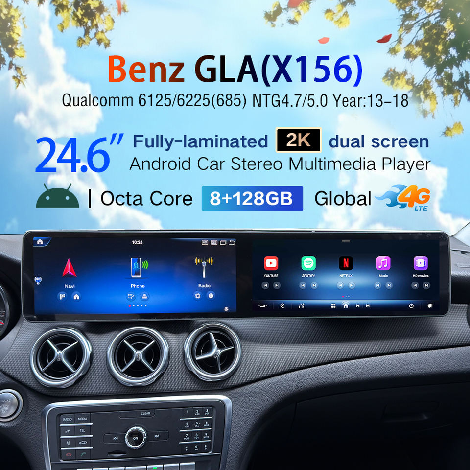 Autoradio Android Auto Carplay à double écran de 12,3 pouces pour Mercedes Benz Classe A CLA GLA W176 Multimédia Carplay sans fil
