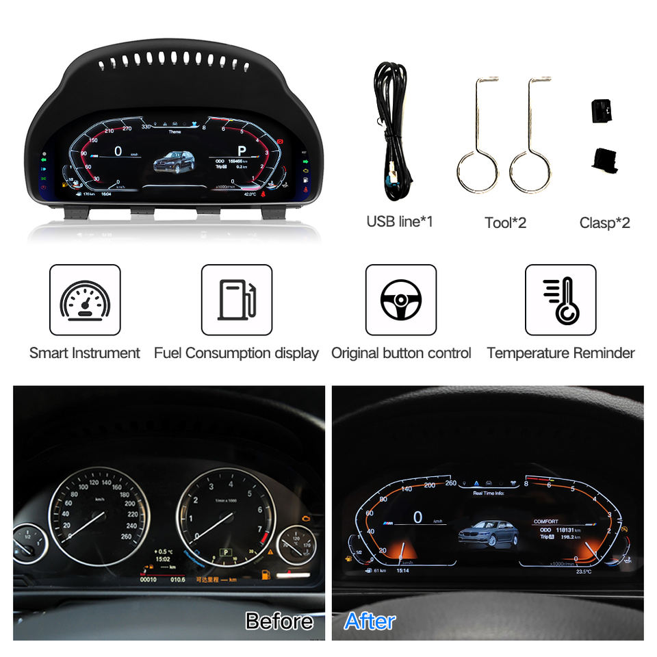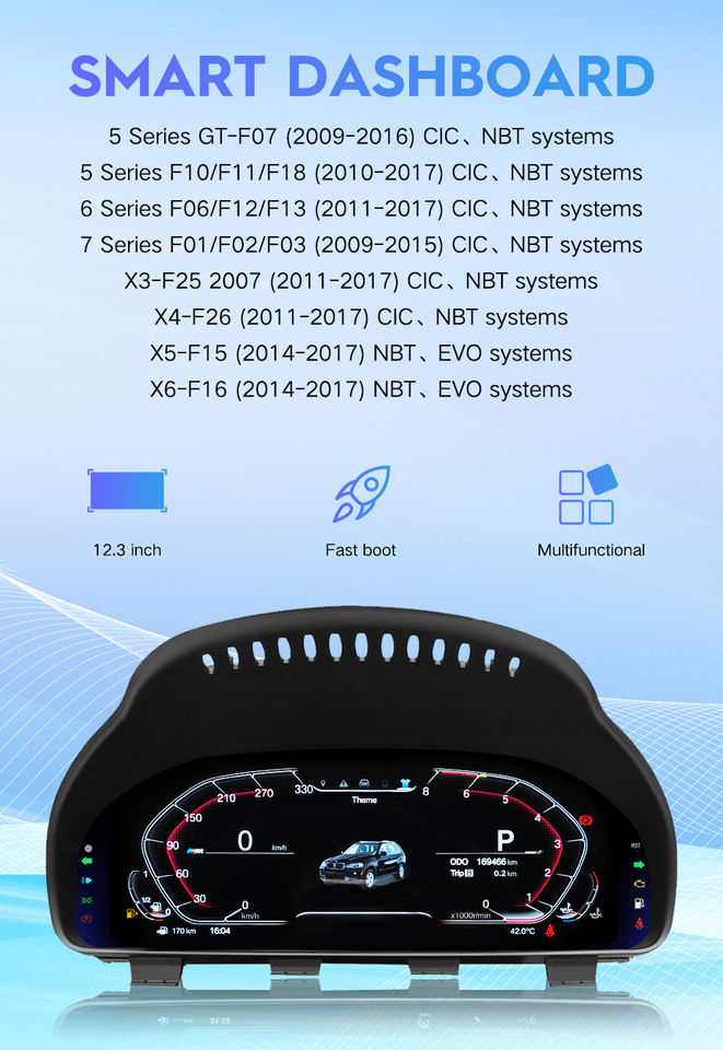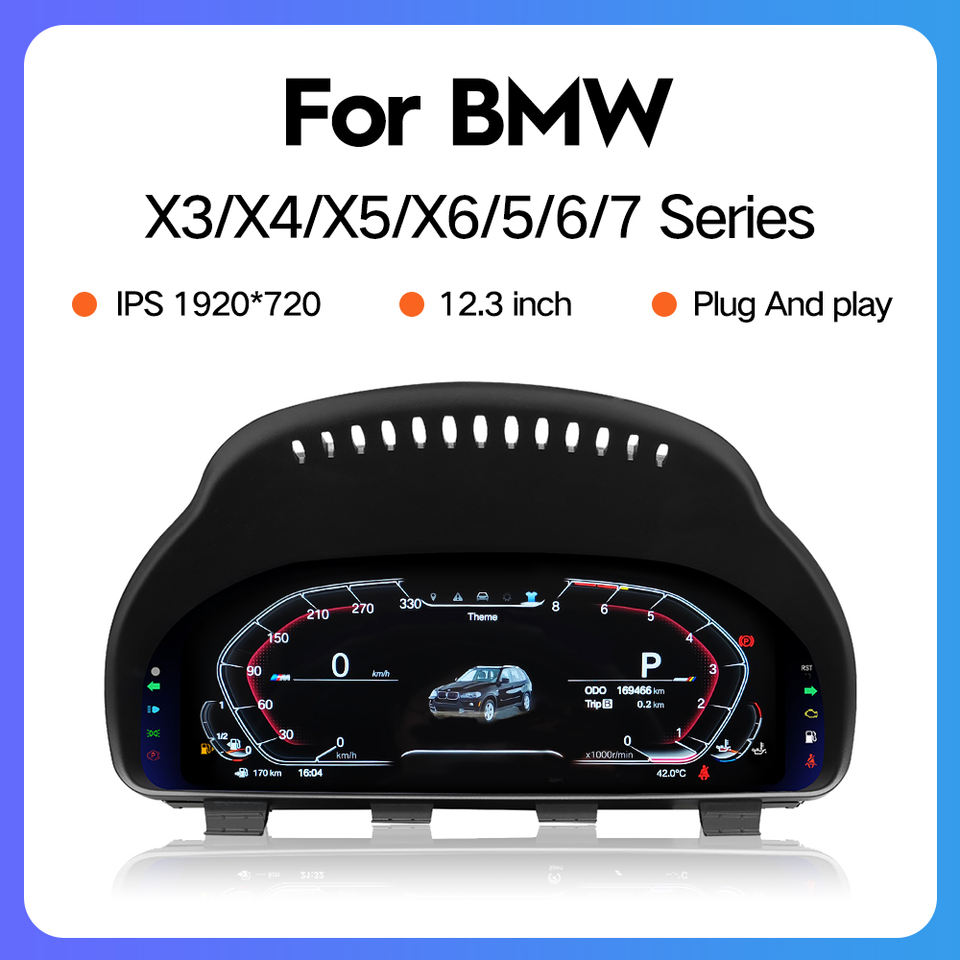 Tableau de Bord Numérique LCD 12,3" pour BMW Série 5 6 7 GT F07 F10 F11 F18 F06 F12 F13 F01 F02 F03 X3 F25 X4 F26 X5 F15 X6 F16