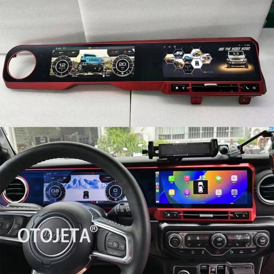 Écran double Android 12,3 pouces + 12,3 pouces pour Jeep Wrangler 2018-2022, autoradio multimédia avec GPS, Carplay, écran LCD, tableau de bord