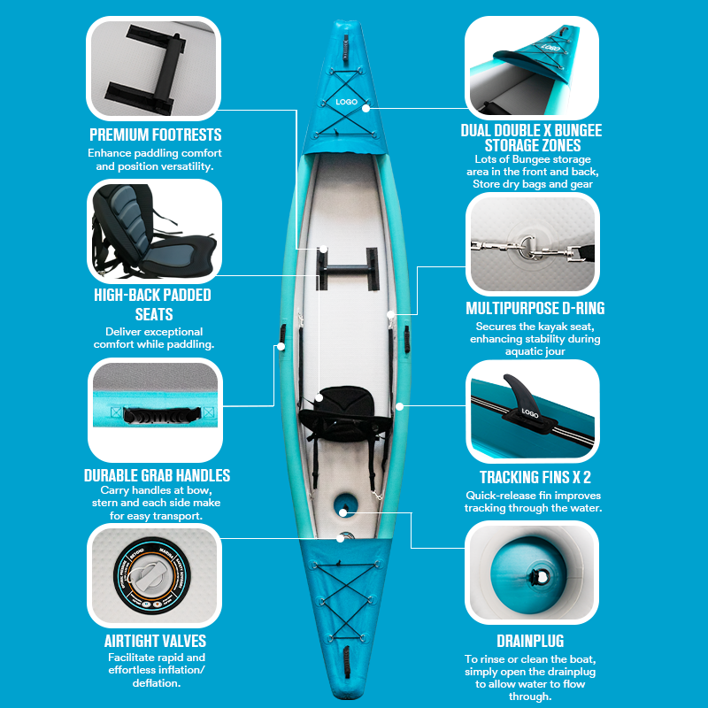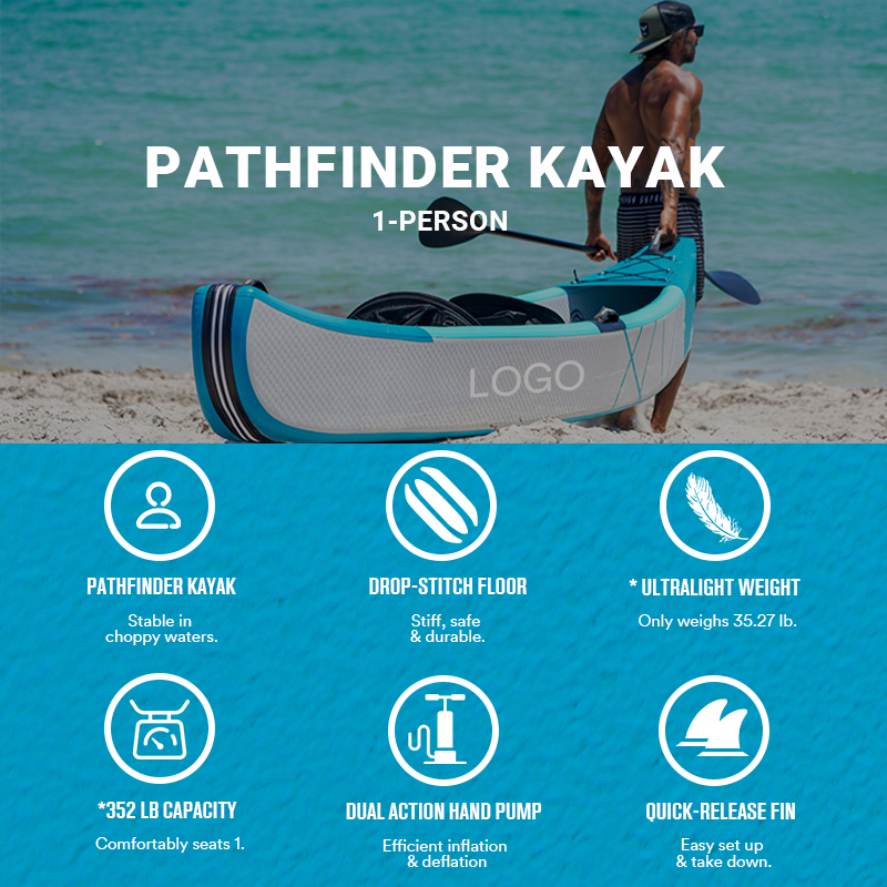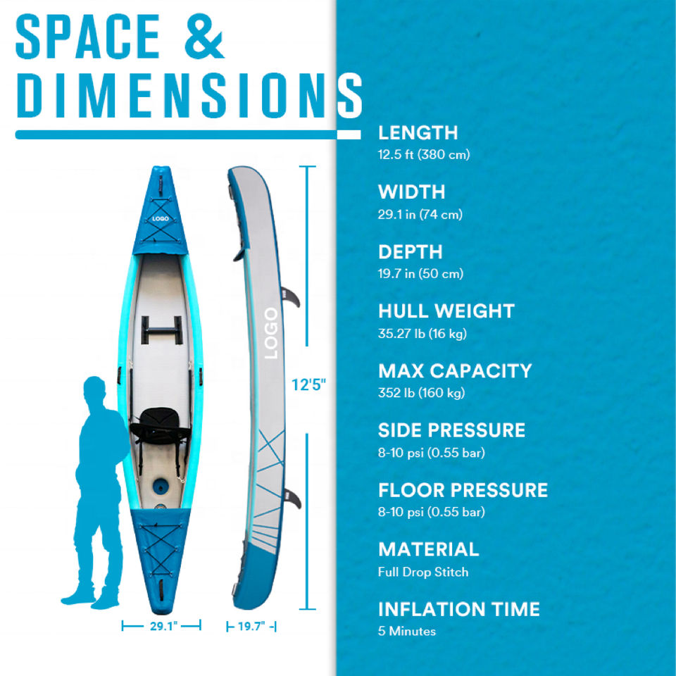 12.5ft 3.8m Drop Stitch PVC 1 personne Kayak gonflable pour le surf avec pompe à main et pagaie de configuration de 5 minutes