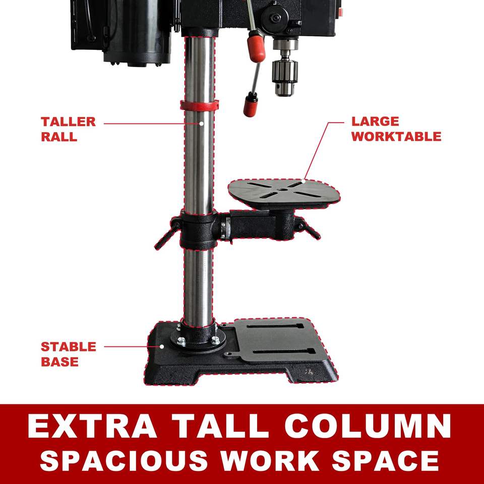 Moteur 6 pôles 12'' à vitesse variable 3/4HP pour perceuse à colonne puissante 360-2000RPM avec éclairage laser de table pour travaux laser