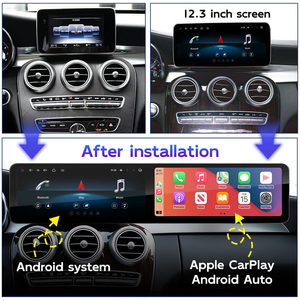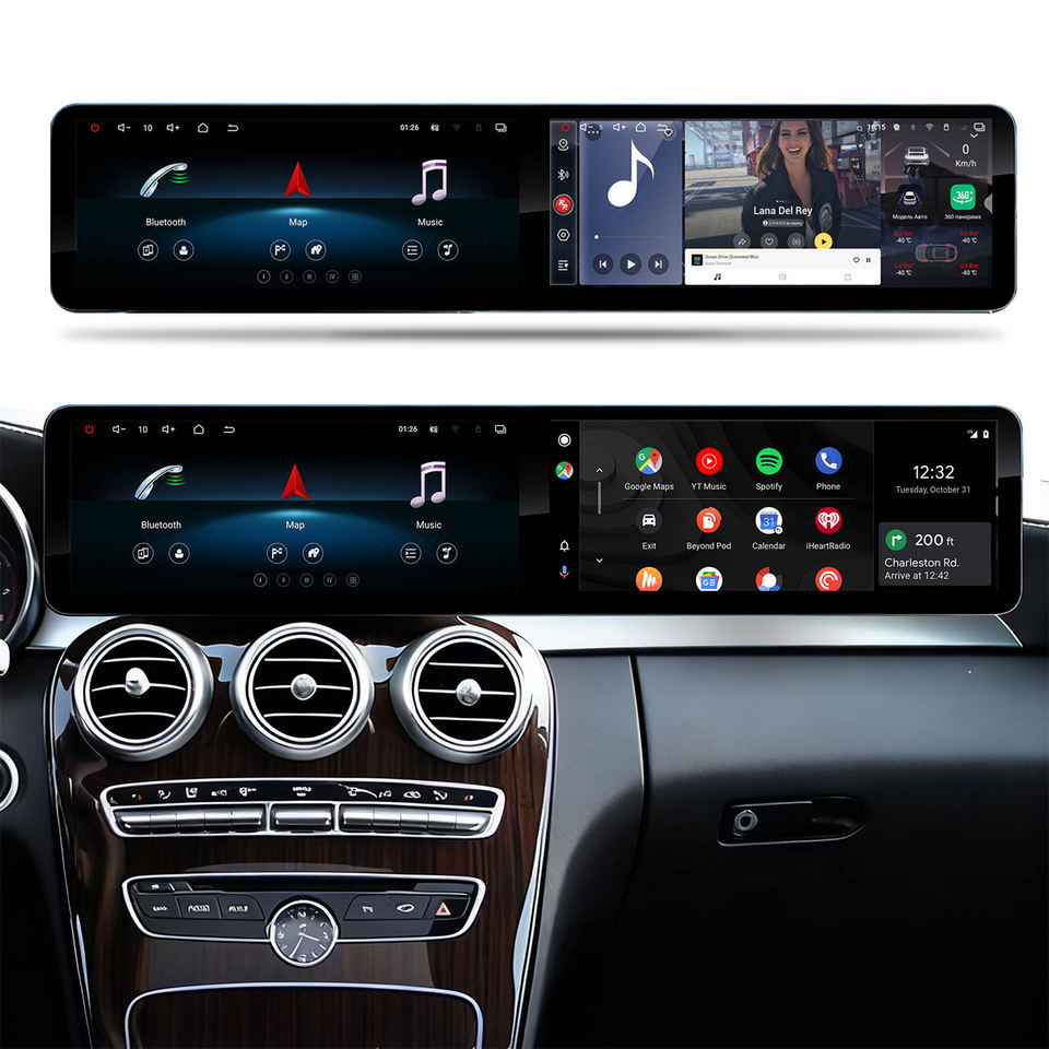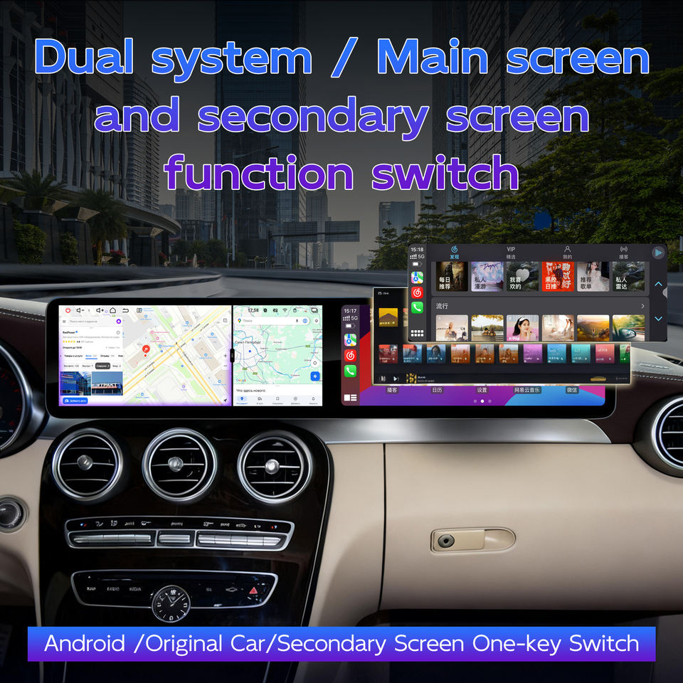 Écran de voiture Android 12,8 pouces à double écran, puce Qualcomm, CarPlay, Android Auto pour Mercedes Benz Classe C GLC W205 X253 2015-2020