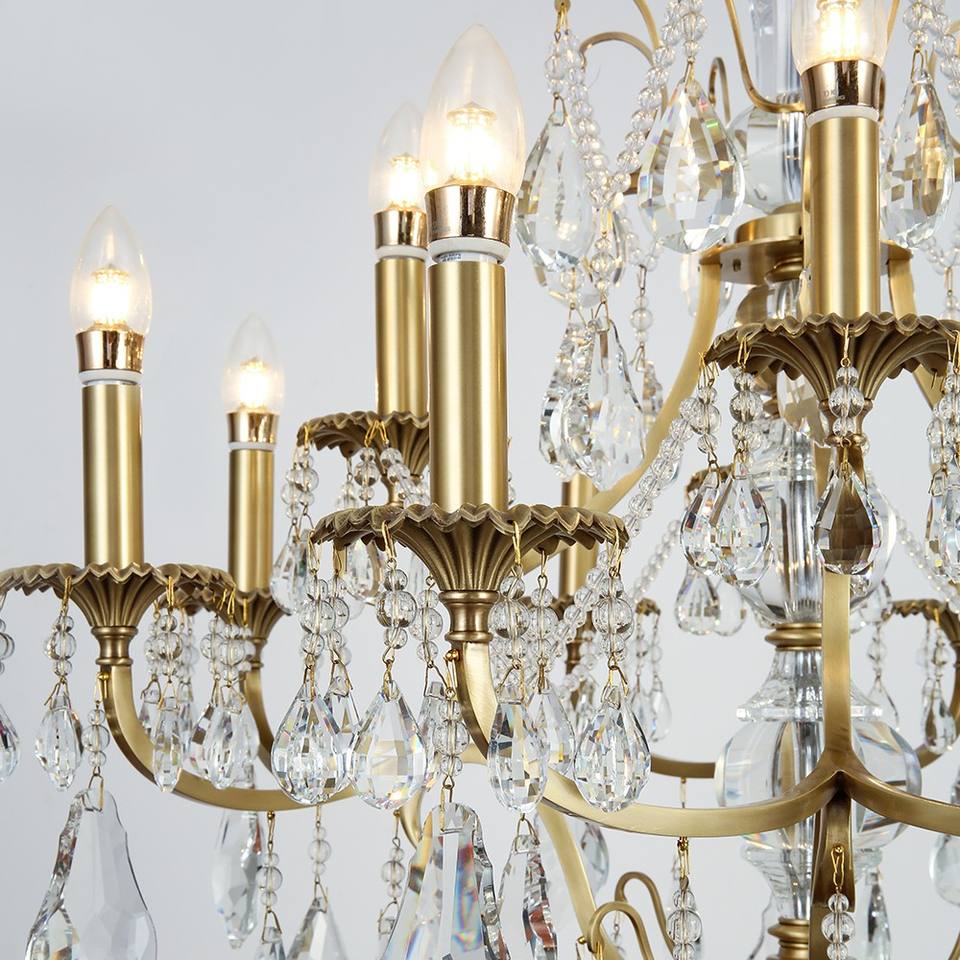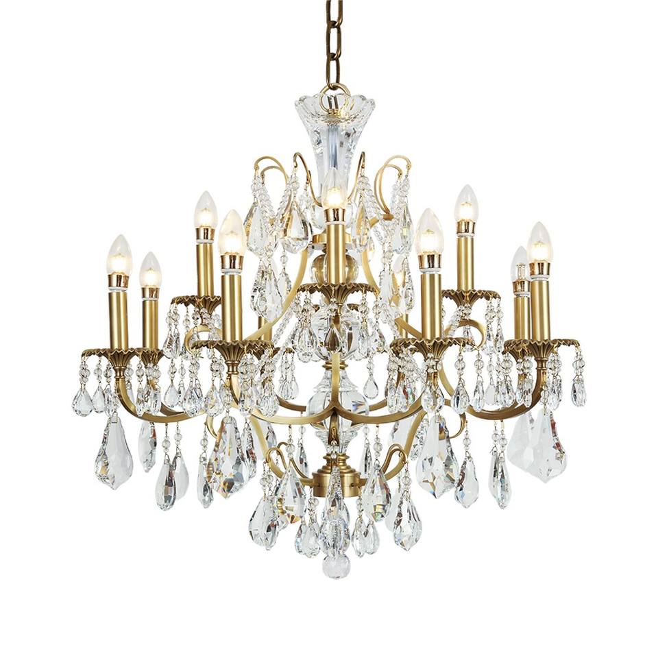 Lustre commercial vintage en cuivre et cristal, style américain, 12 ampoules, pour restaurant, salon, chambre à coucher