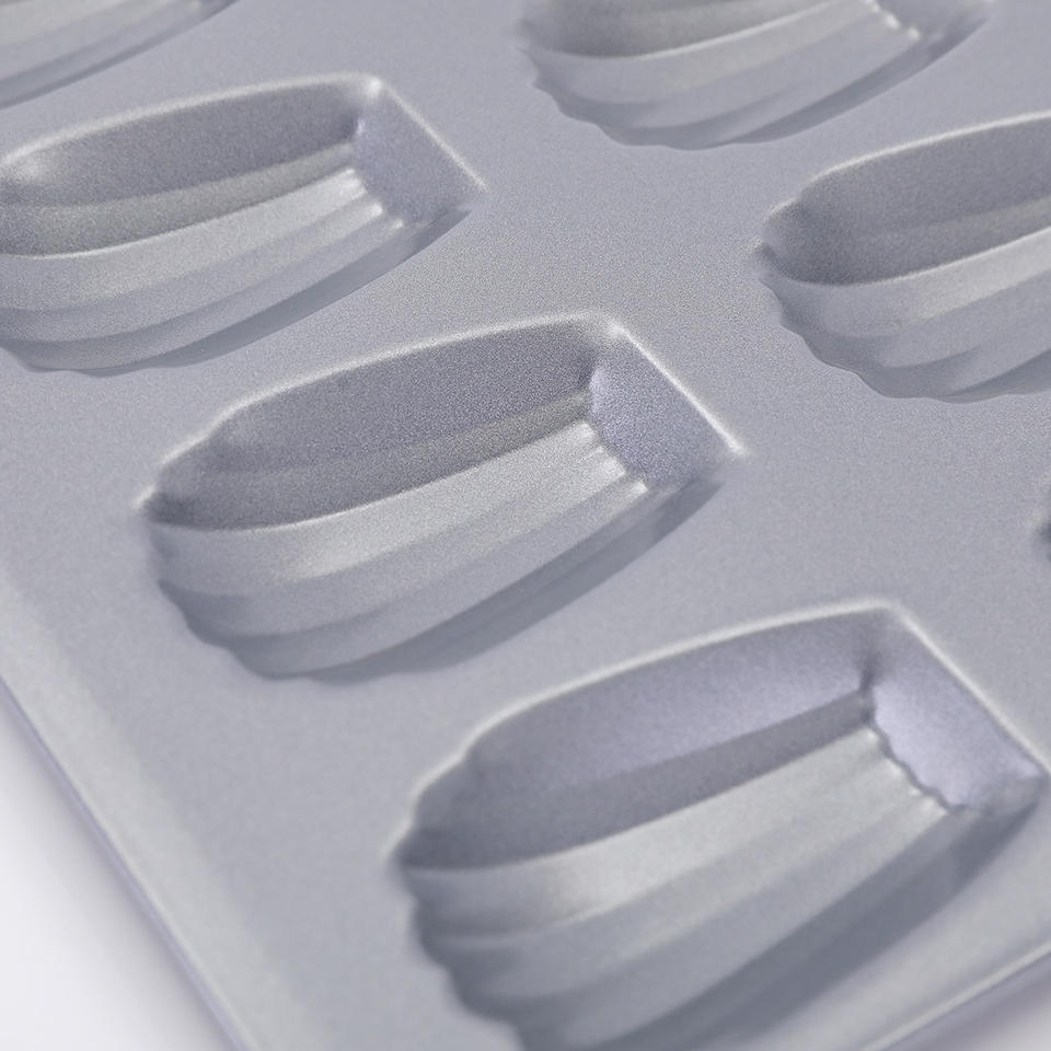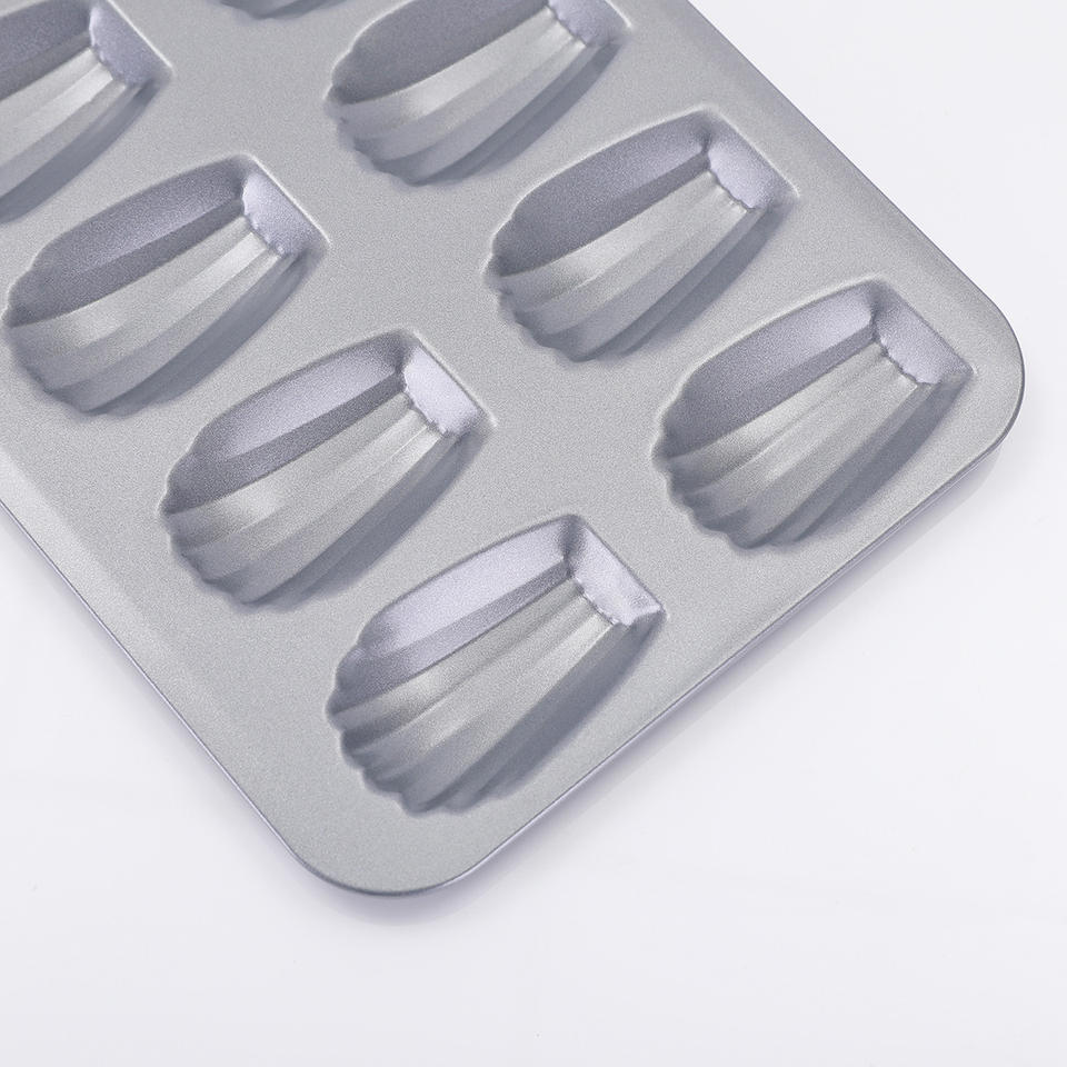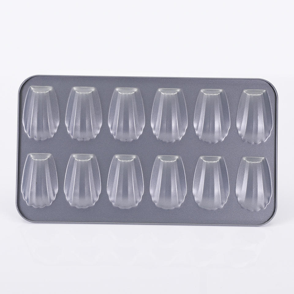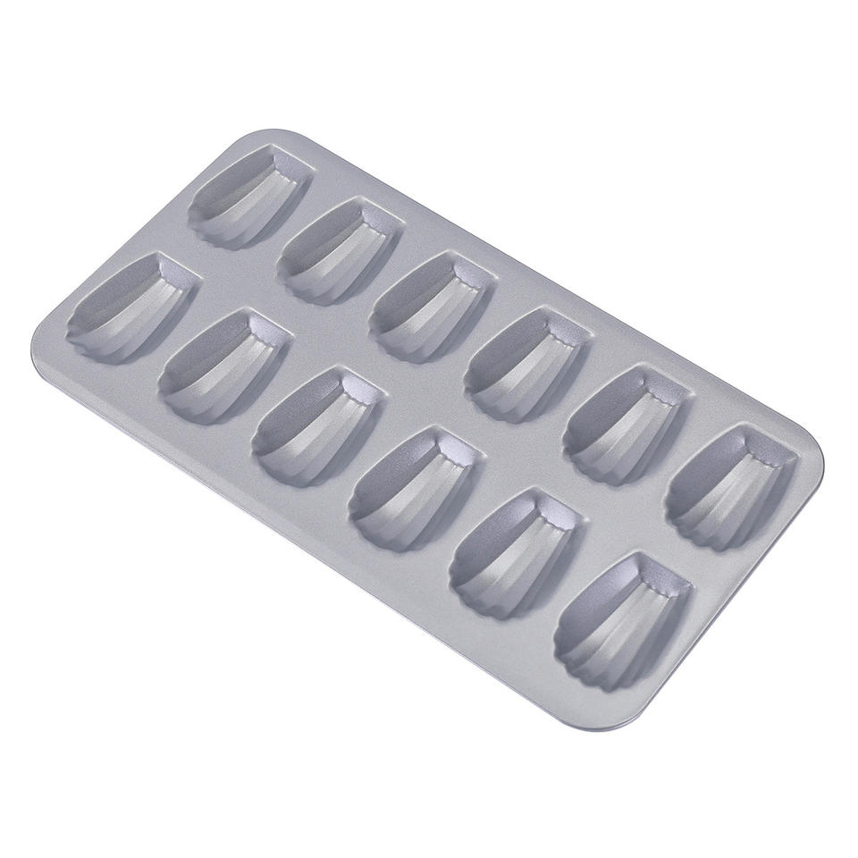 Moule à gâteau en forme de coquille à 12 cavités, plaque de cuisson antiadhésive pour la préparation de desserts à la maison, gris spatial