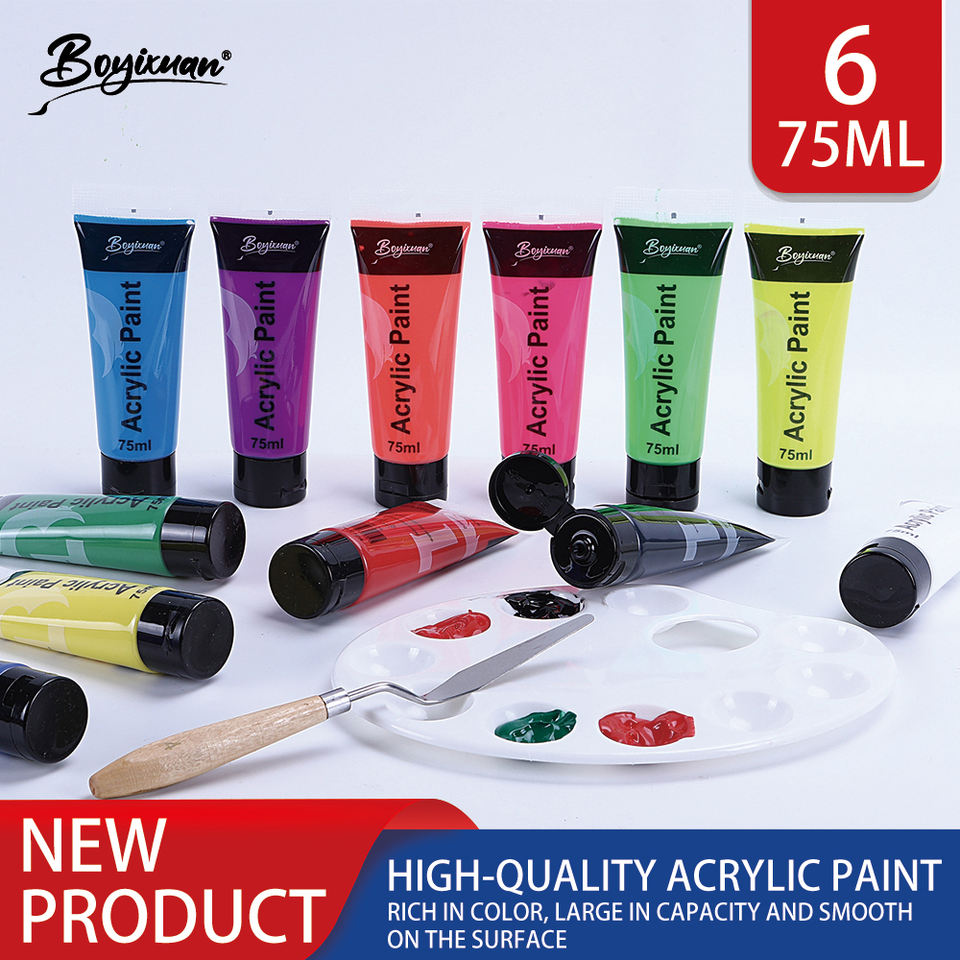 Ensemble de peintures acryliques 12 couleurs 75 ml pour débutants – Idéal pour verre, toile et papier – Peintures pigmentées et fournitures d'art mural