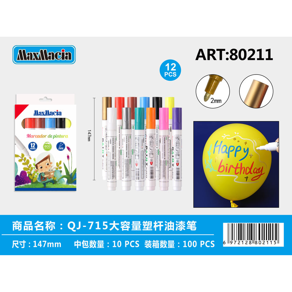 12 couleurs écologique grande capacité marqueurs de peinture ensemble pointe fine pinceau marqueur stylo avec matière plastique en vrac fournitures en gros