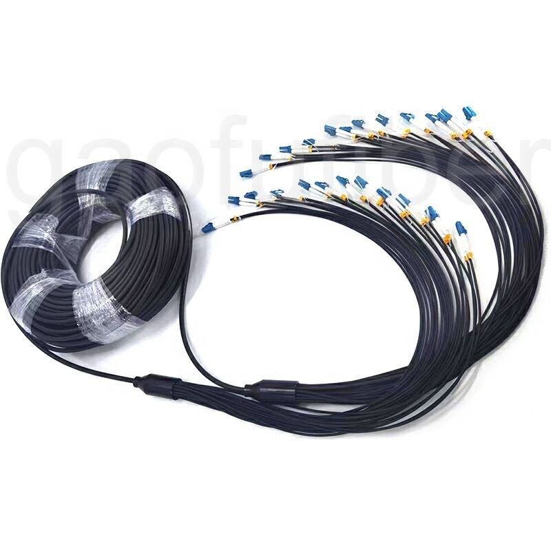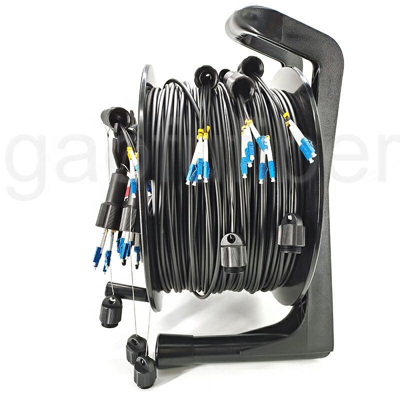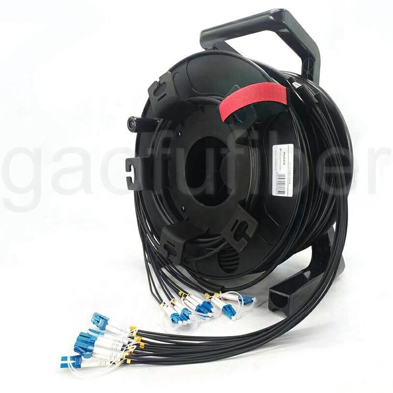 Câble de brassage tactique blindé à fibre optique monomode OS2 G657A1 G657A2 à 12 cœurs et 24 fibres, extrémités décalées LC, avec enrouleur de câble