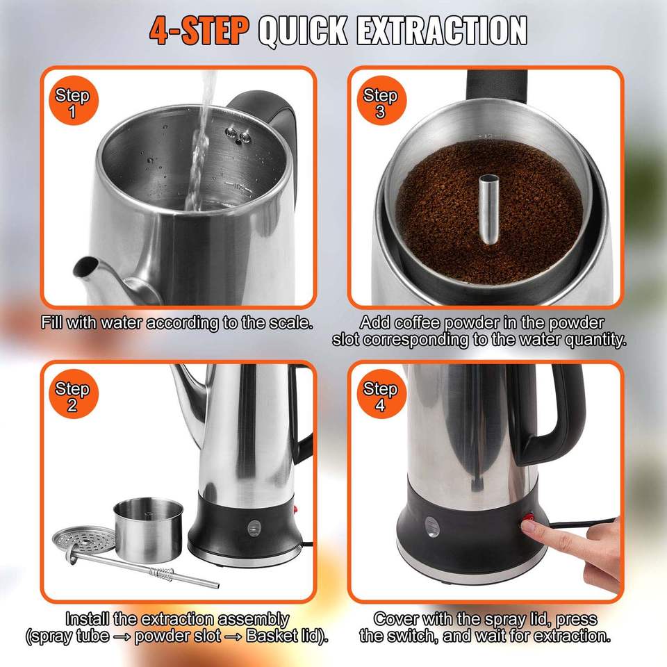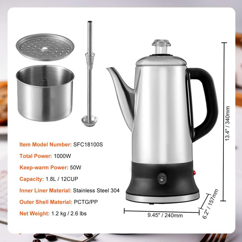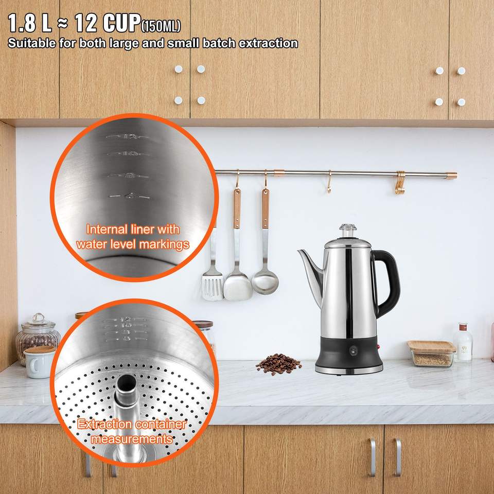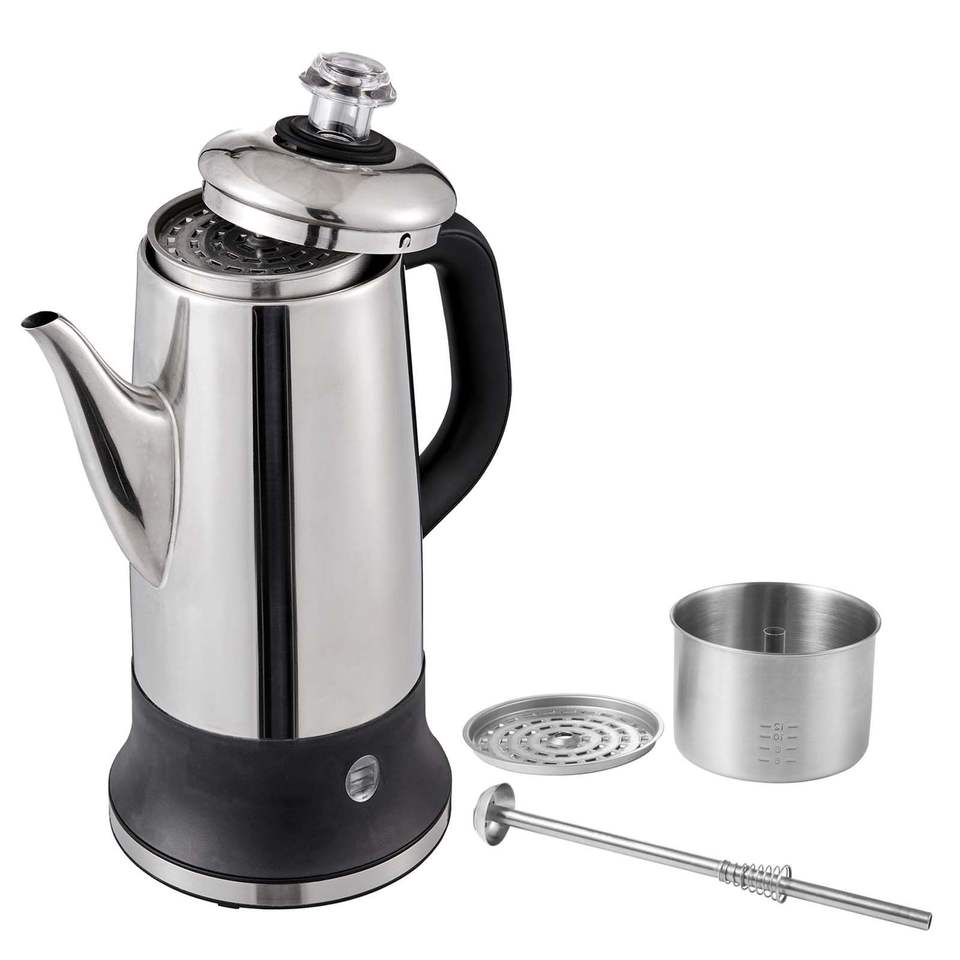 Cafetière électrique à 12 tasses en acier inoxydable 304 avec fonction de maintien au chaud et poignée résistante à la chaleur