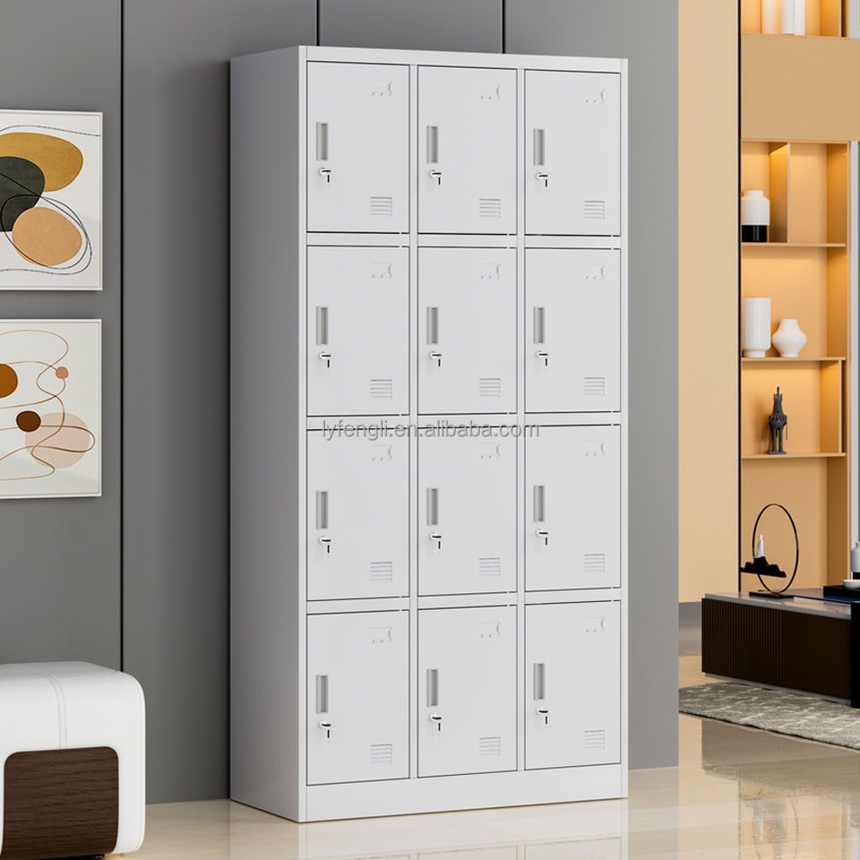 Casier métallique à 12 portes en stock, armoire de rangement en acier pour école, gymnase, usine, vente en gros, MOQ 30, échantillon et petites commandes acceptables