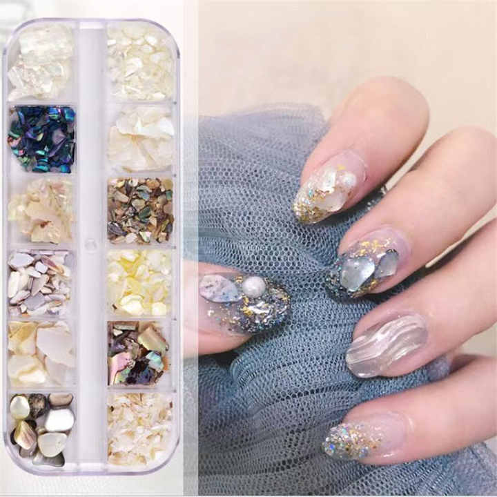 12 Grille 3D Naturel Perle Shell Mère Nail Décoration Mixte Talisman Brillant Diamant Ongles Accessoires Fournitures
