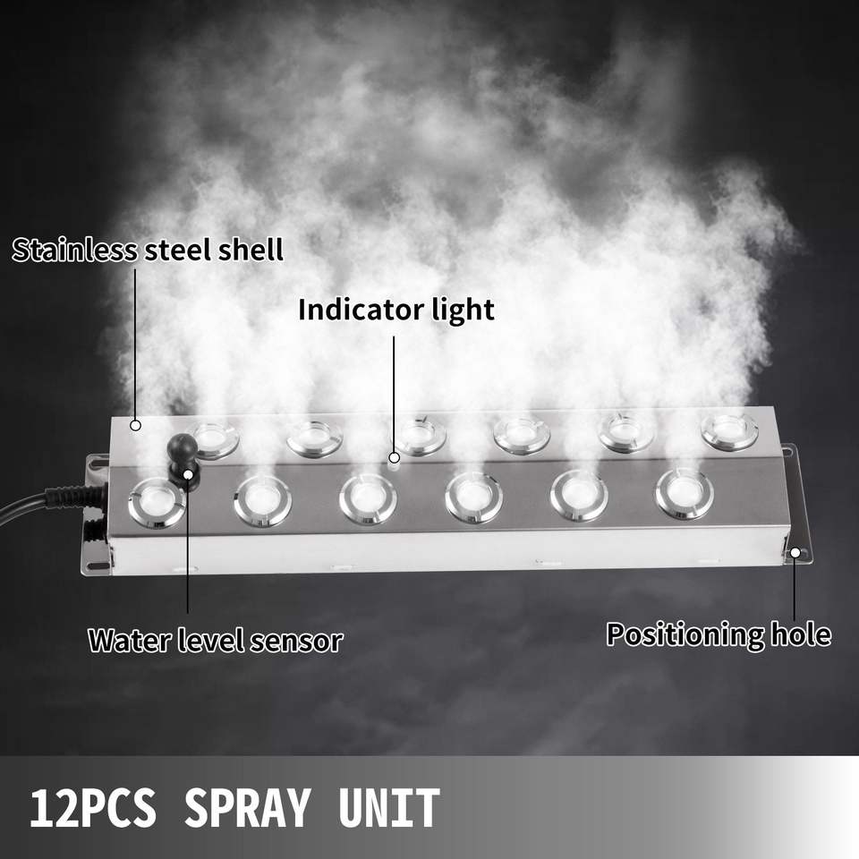 12 têtes de brumisateur ultrasonique étanche alimentation brumisateur humidificateur en acier inoxydable étang brumisateur avec sortie 7 kg/h