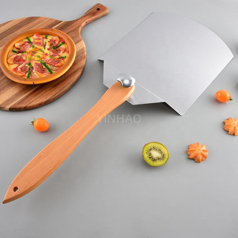 Pelle à pizza de 12 pouces en acier inoxydable 430 avec manche en bois pliable pour un rangement facile, spatule à pizza de luxe pour la cuisson