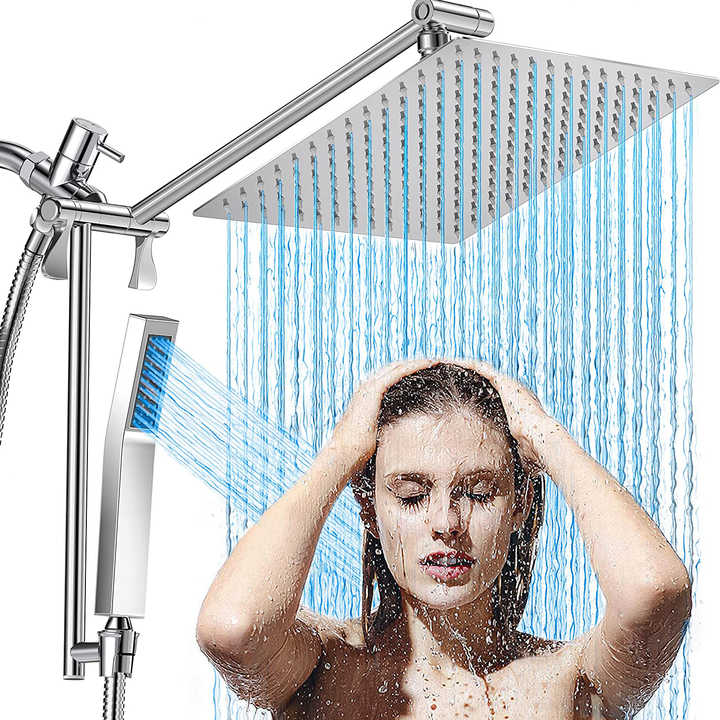 Pomme de douche de pluie de 12 pouces (entièrement en métal) avec douchette, pomme de douche double haute pression avec tuyau d'extension réglable