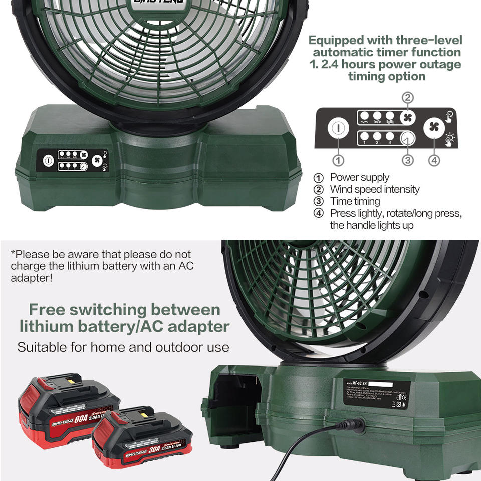 12 pouces ventilateur oscillant électrique lumière vent fort bouton contrôle batterie au Lithium alimenté boîte-cadeau voiture extérieur ménage RV hôtel utilisation