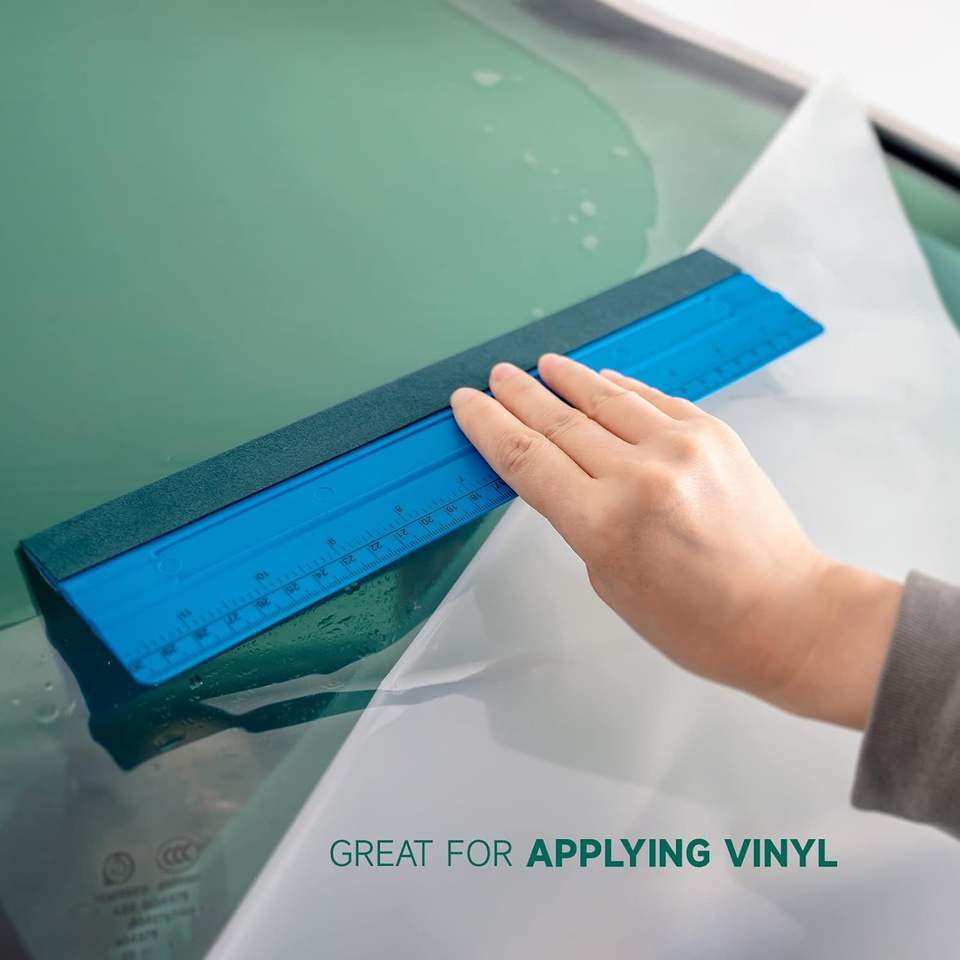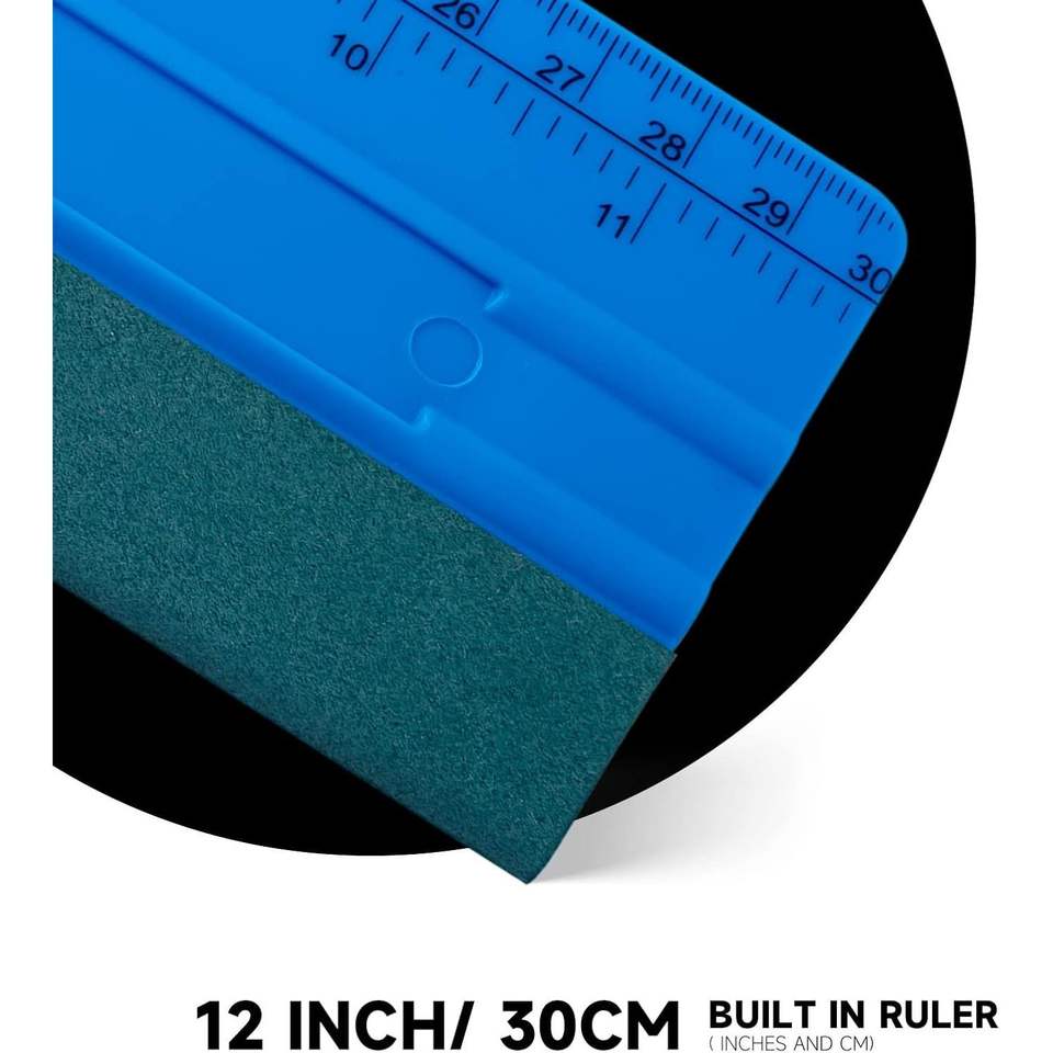 Règle universelle en vinyle PP bleu rigide de 30 cm avec spatule à 4 coins pour l'installation de film teinté pour vitres, feutre de 30 cm
