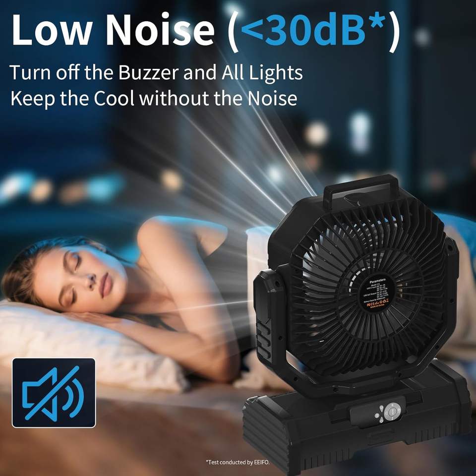 Ventilateur de camping électrique portable léger de 12 pouces, batterie rechargeable de 40 000 mAh, lumière LED, mode SOS, oscillation automatique, sans balais