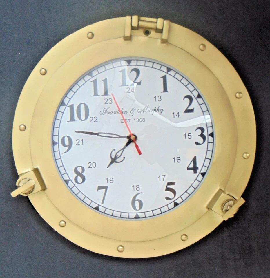 Horloge murale de 12 pouces, style moderne du milieu du siècle, à quartz, à piles, en aluminium et verre, design hublot nautique pour cabine de bateau