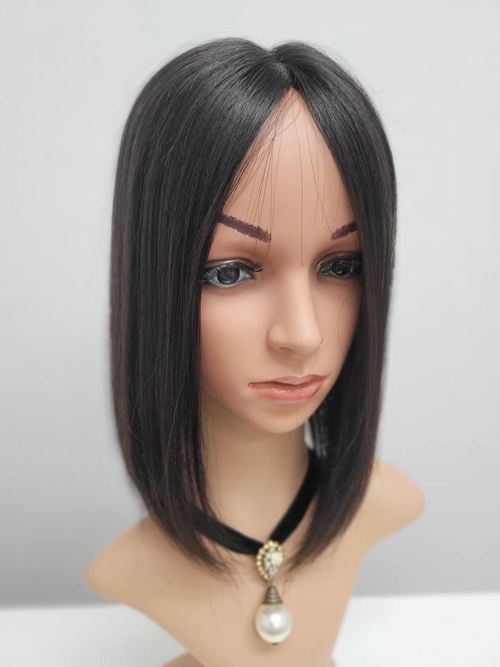 12 pouces naturel noir/marron WIGTS cheveux humains respirant cheveux vierges sensation peignes intérieurs attaché à la main mi droite Premium léger