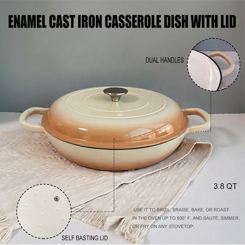 Nom du produit:Braser en fonte émaillée marron clair avec double poignée