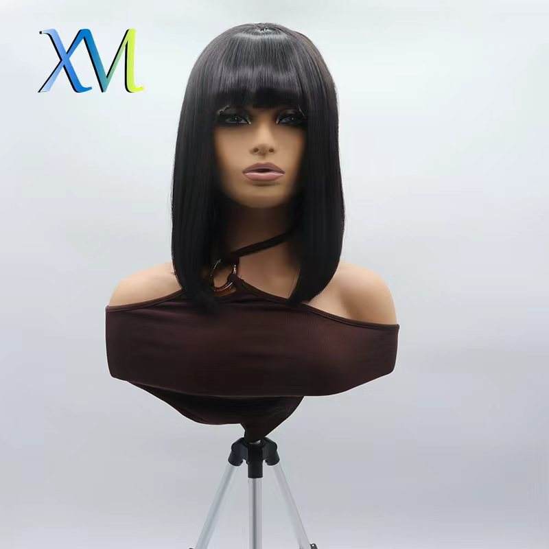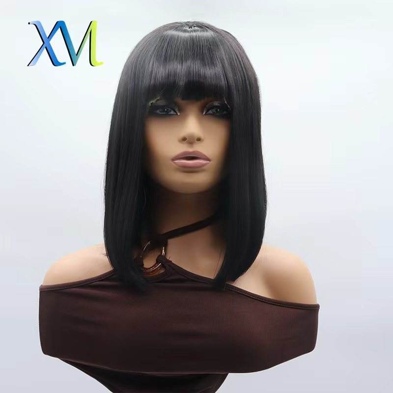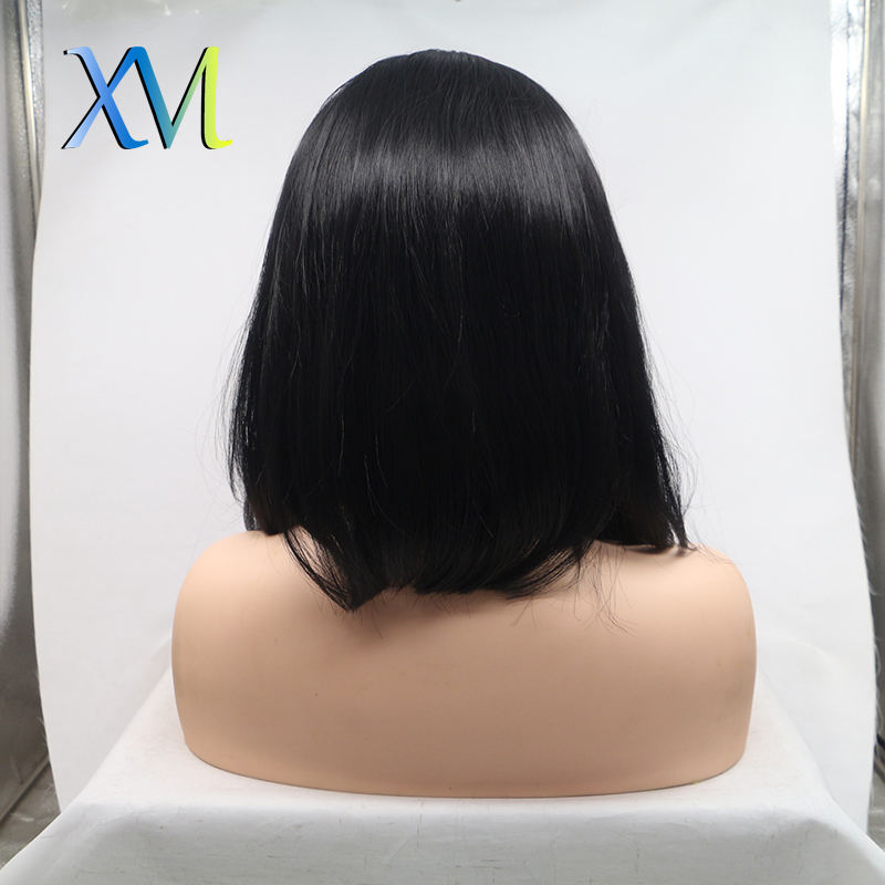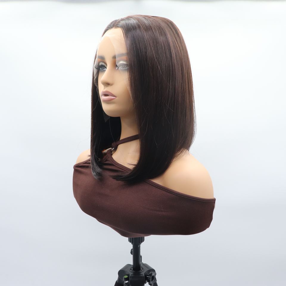 Perruque courte bob de 12 pouces avec dentelle frontale, en fibre haute température, sans colle, base en dentelle transparente, raie au milieu, aspect naturel, franges droites