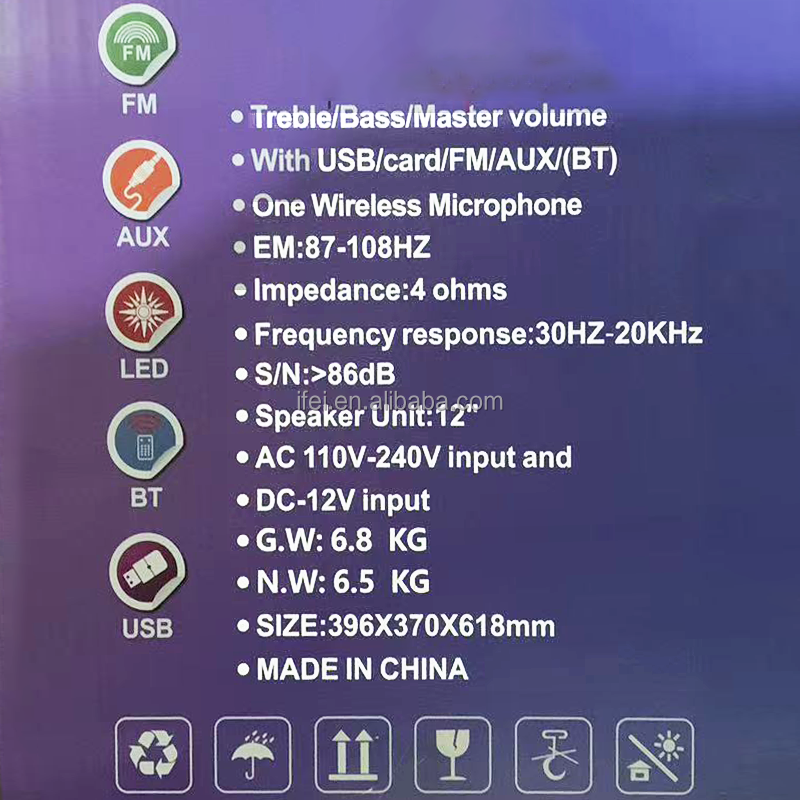 Fonction:BT/ TF/ USB / AUX/ FM/ TWS/ MIC
