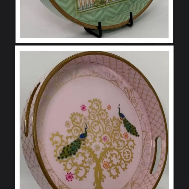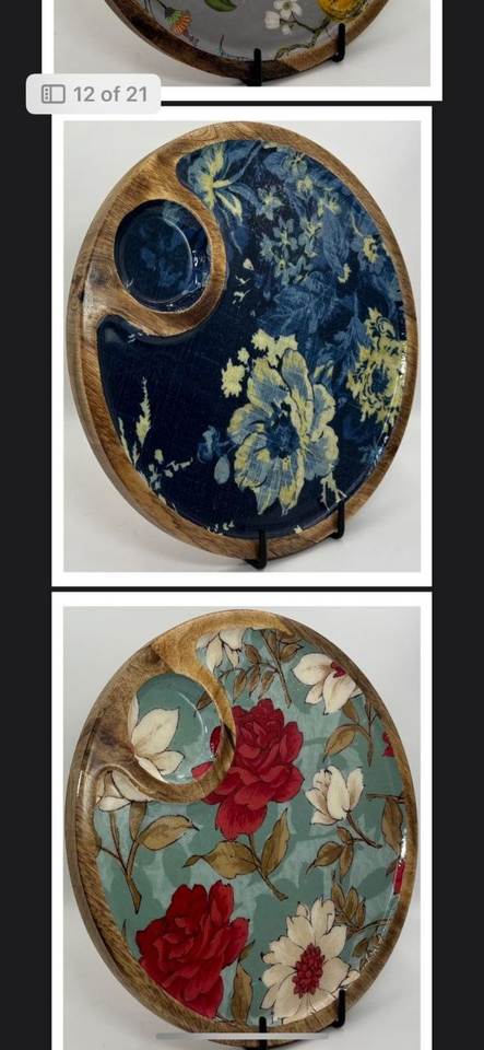 Plateau rond en bois de noyer noir de 12 pouces, plateau de service décoratif en bois avec poignées
