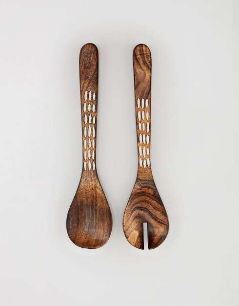 12 pouces vente plats serveur cuillères à la main abordable en bois cuillère et fourchette salade meilleure qualité bois par STAR CRAFTS INDIA