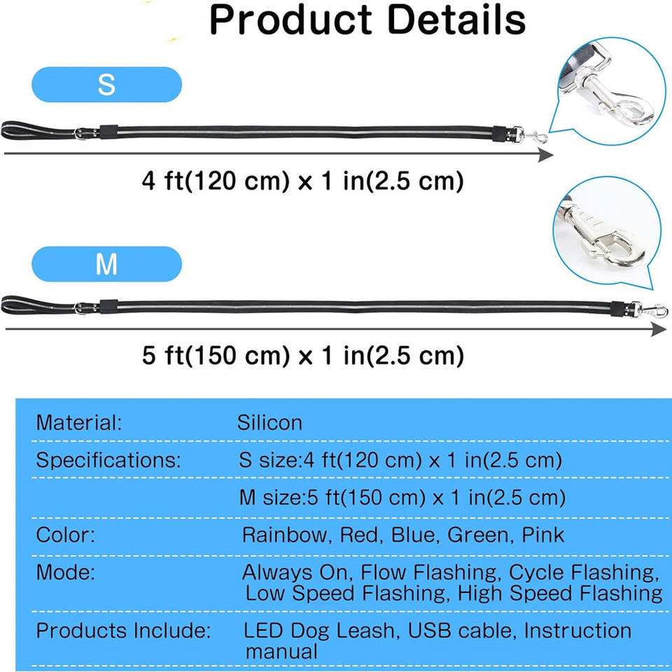 12 Lighting Modes USB Rechargeable Luminous Waterproof Dog Lead