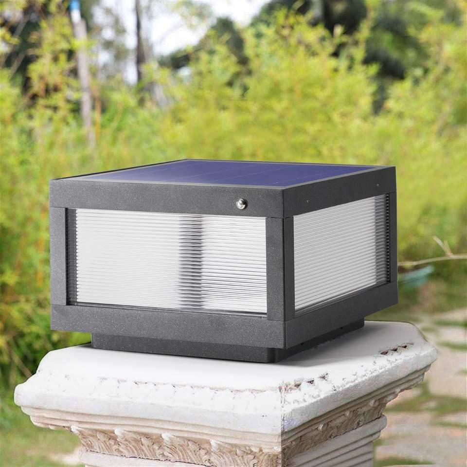 Lumière de clôture LED extérieure moderne de 12 pouces, alimentée par énergie solaire, capuchon de poteau noir pour les allées, les terrasses et les patios - 1 paquet