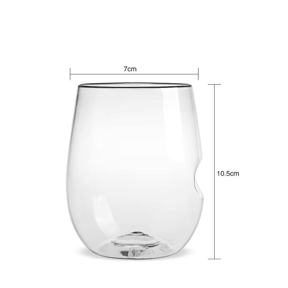 Verre à vin sans pied de forme spéciale transparent de 12 oz, avec indentations pour les doigts, coupe à dessert, incassable, recyclable, style classique américain