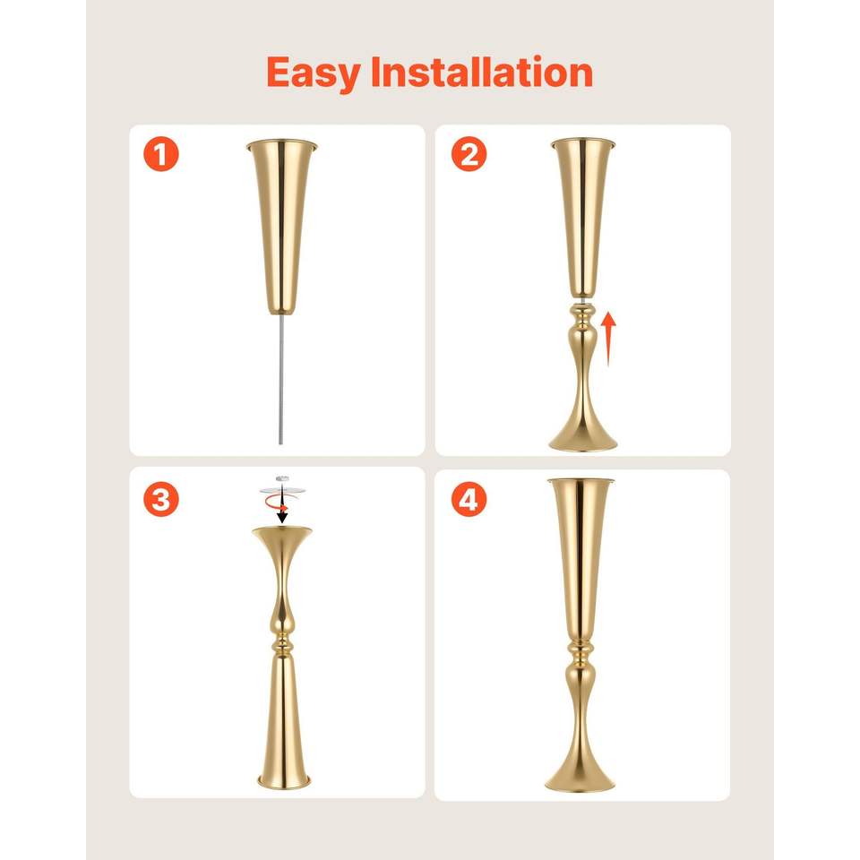 12 pièces – Vases à fleurs électroplaqués de 55 cm de haut, installation facile, pour centres de table de banquet et décorations de table de mariage