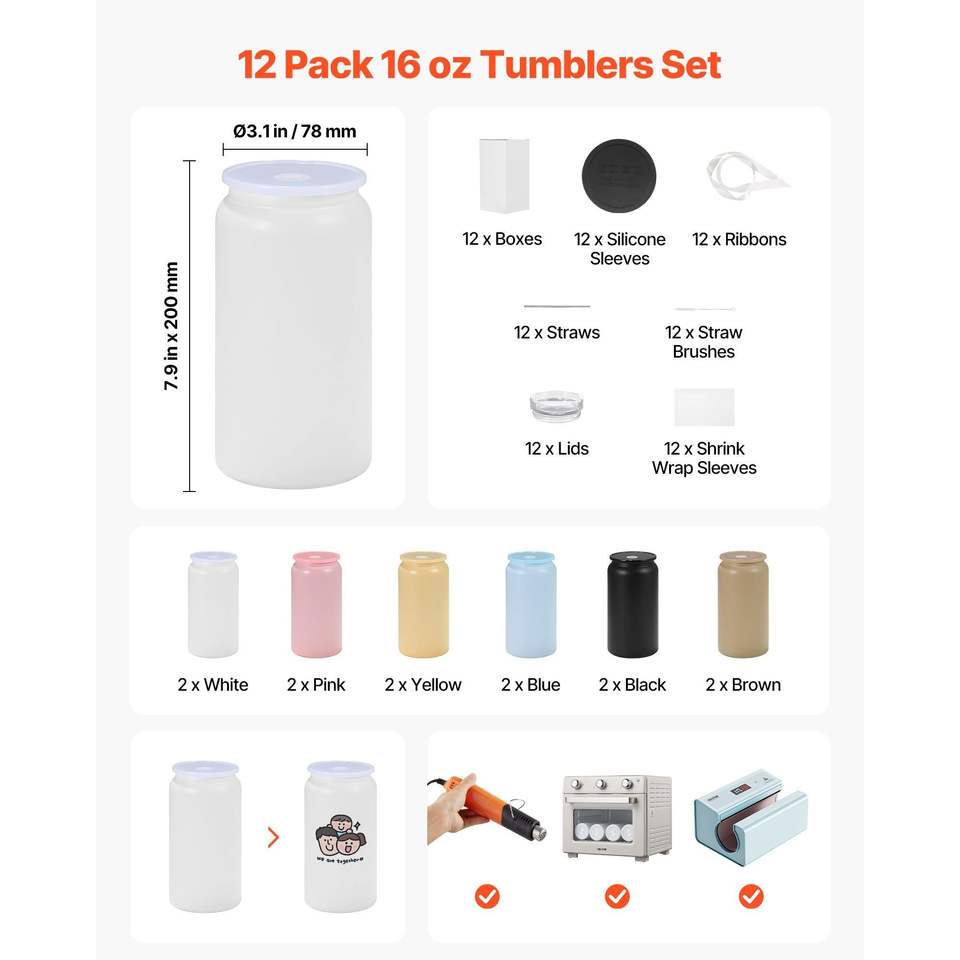 Lot de 12 gobelets isothermes en acier inoxydable multicolores de 473 ml avec couvercles et pailles, tasses à double paroi pour sublimation, vente en gros
