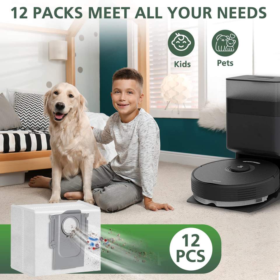Lot de 12 sacs à poussière de grande capacité de 3.6 L compatibles avec le robot aspirateur Roborock S8 +, S8 Pro Ultra, S7 Maxv Ultra