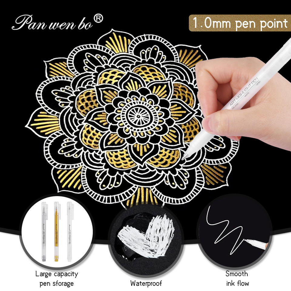 Lot de 12 stylos à encre gel à pointe extra fine 1mm or argent blanc opaque matériel plastique d'archives pour dessin croquis