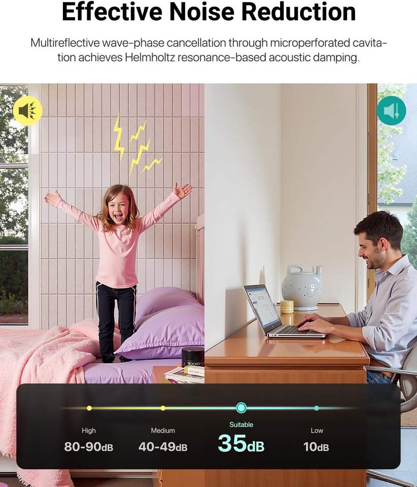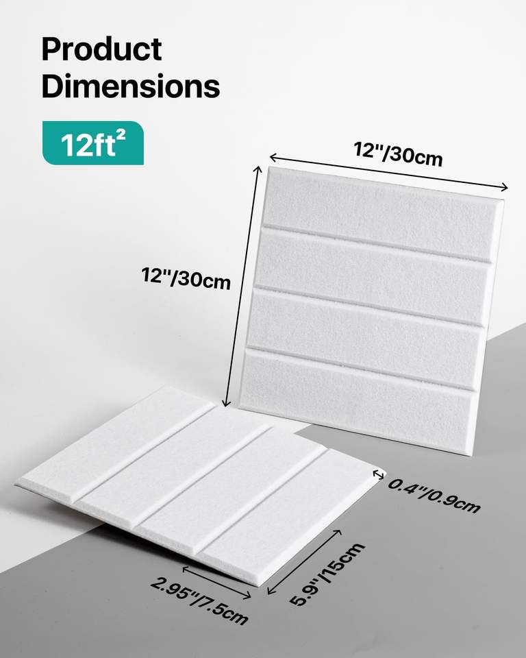 12-Pack Self-Adhesive White Acoustic Foam Panels 12" X 12" X 0.4" High Density Sound-Absorbing Wall Panels for Living Room
