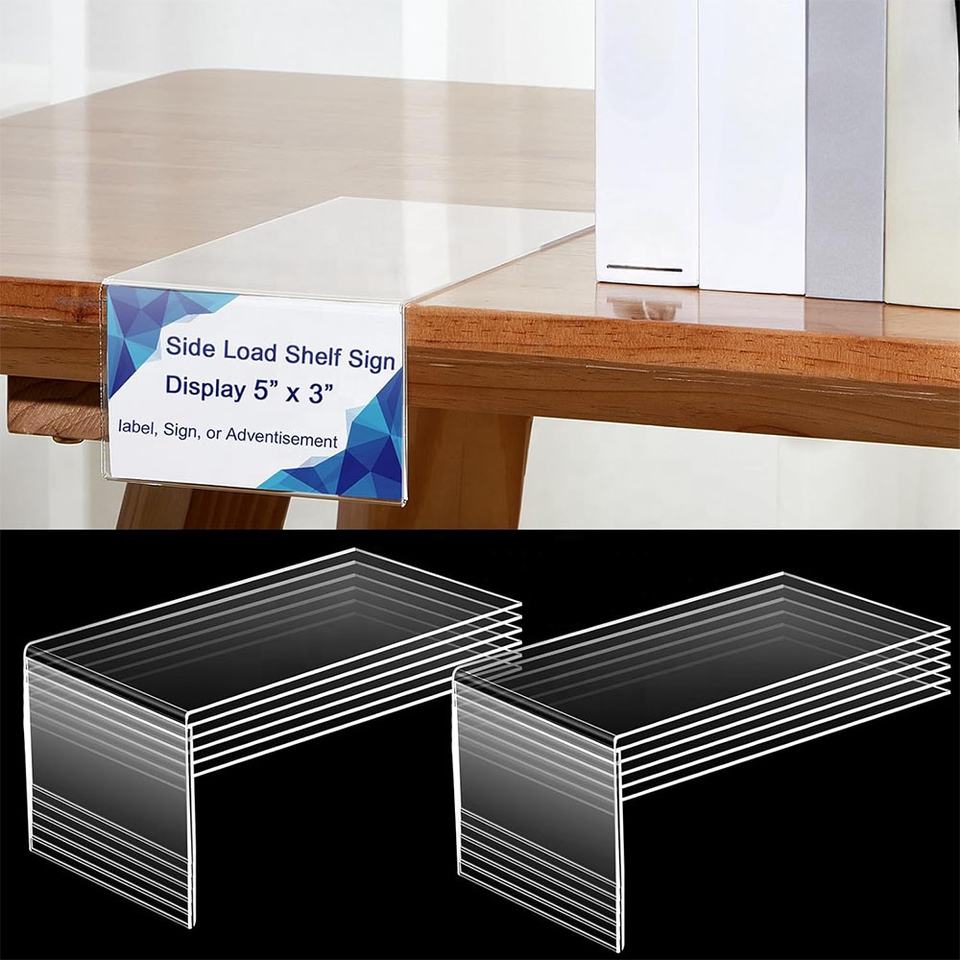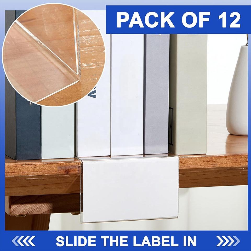 12 supports d'étiquettes mobiles en acrylique pour bibliothèque, marqueurs de présentation transparents 5" x 3", étiquettes de vente au détail pour bureau