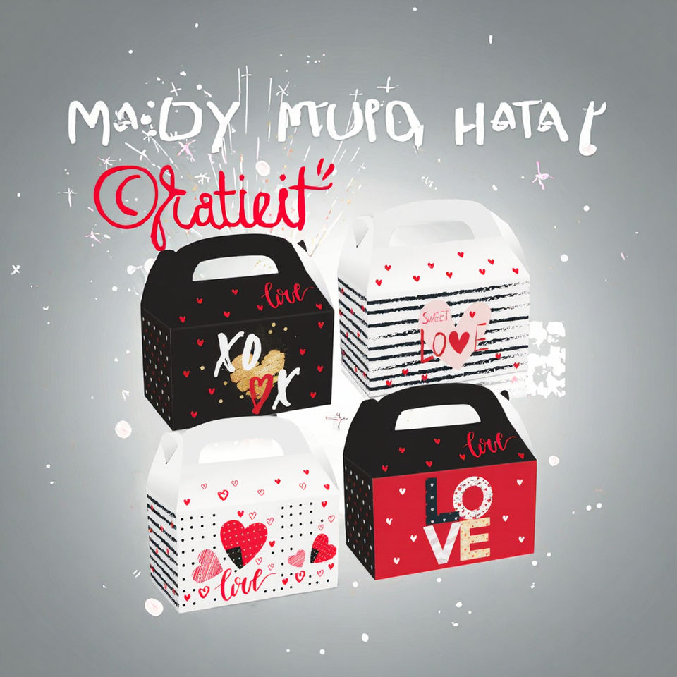 12 pièces/paquet Boîtes à poignée en carton à thème amour faites à la main Emballage de bonbons Cadeau Biscuit Favori Joyeux anniversaire de la Saint-Valentin Décoration de fête