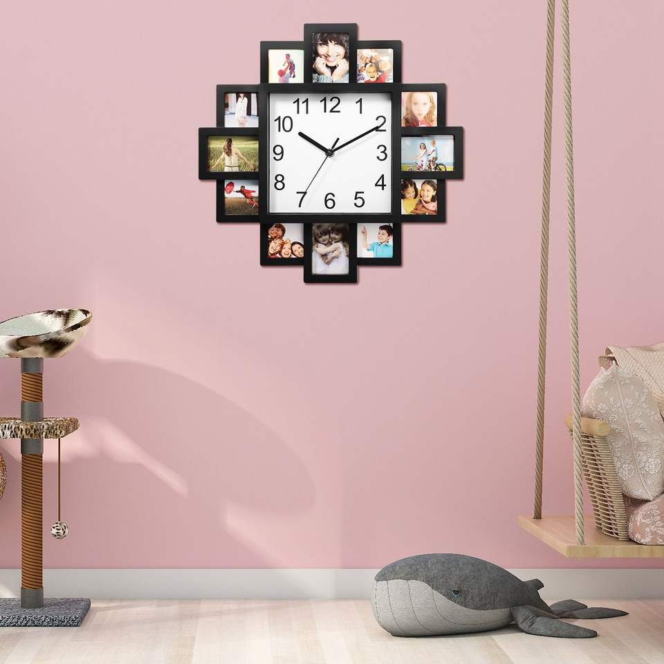 Horloge murale avec affichage de 12 photos, décoration murale pour la maison, cadre photo mural, horloge avec collage de photos