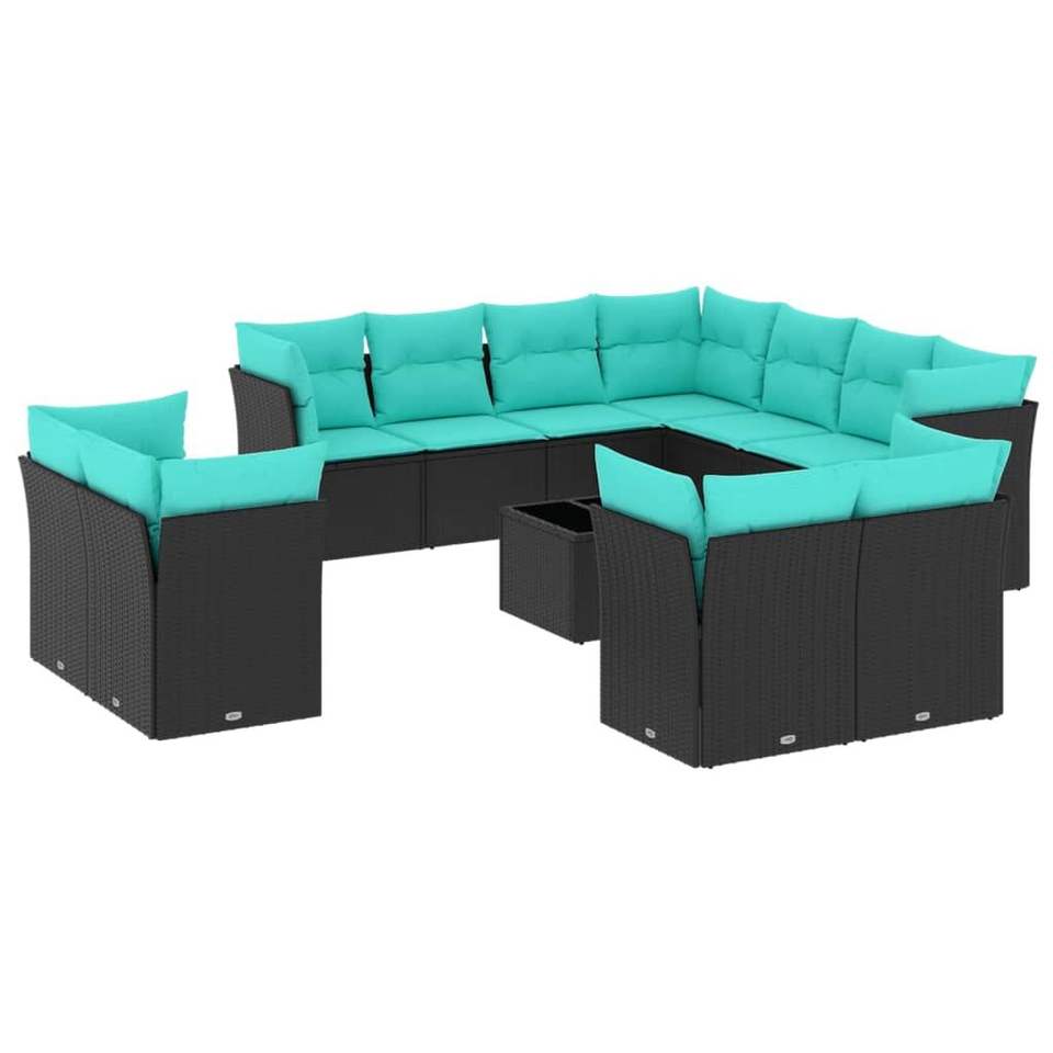 Ensemble de canapés de patio en polyrotin noir, 12 pièces, avec coussins, ensembles de jardin